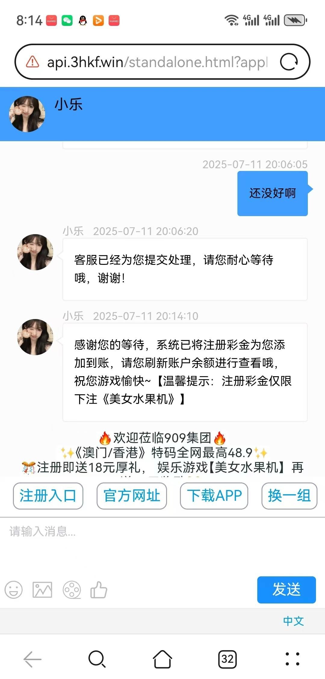 进去随便一个视频看到有909彩票的截图 然后点 视频上划几下左下角有个909彩票,链接进去注册绑卡找客服申请 客服哪里需要你提供银行卡照片和活动来源(刚刚的截图) 注意只能美女水果老虎机 我是3分选苹果和2个10倍的 中了直接比分 你们可以押Boss 我开了3个