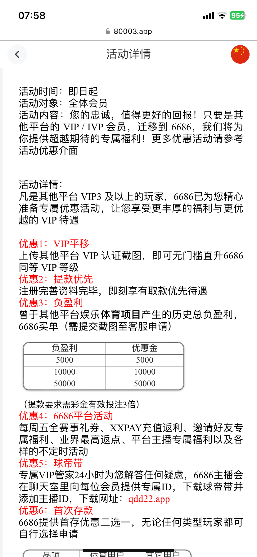 其他台子体育亏损5000直接送5000,没验证我不玩体育,近期有亏损体育的可以去试试,活动时间还剩18天,吃上的兄弟顶个有效,送的有点多没验证,别充值!