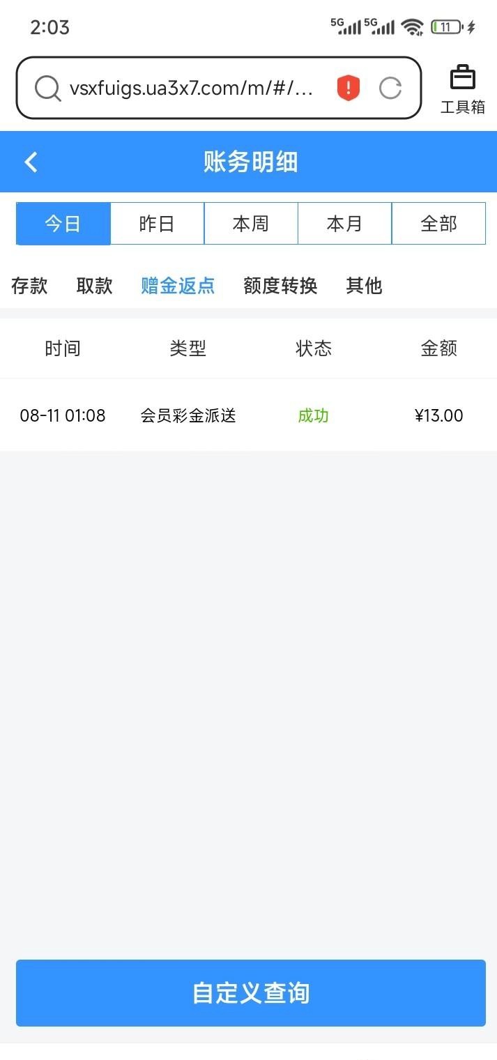 上去看一下有13彩金 没有充值过 有号上去看看