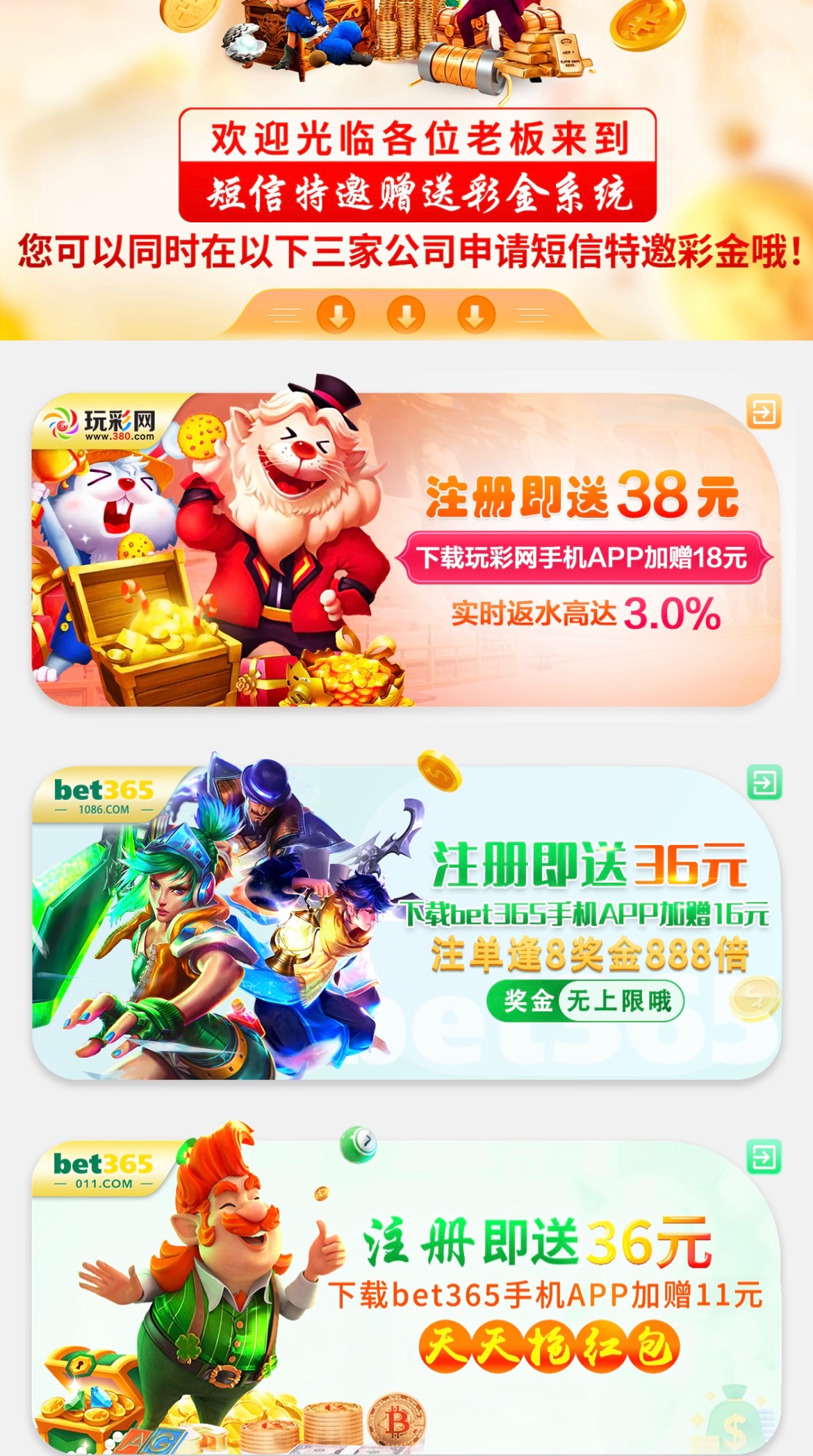 分别是三个网址入口,都是自助秒送36-38元。不用注册账号直接输入手机号+账号(乱填就行)进行碰瓷,成功再注册账号然后验证手机号领取彩金。