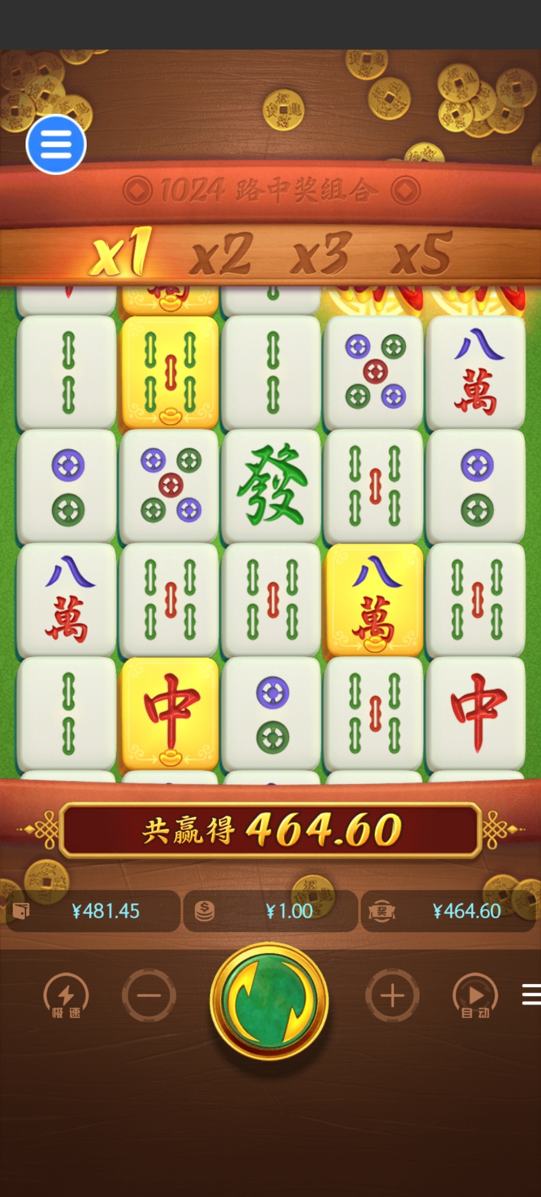 新用户闯关彩金38块 只敢拉一块 马上见底 进胡了 炸了个四百多倍 小吃五百