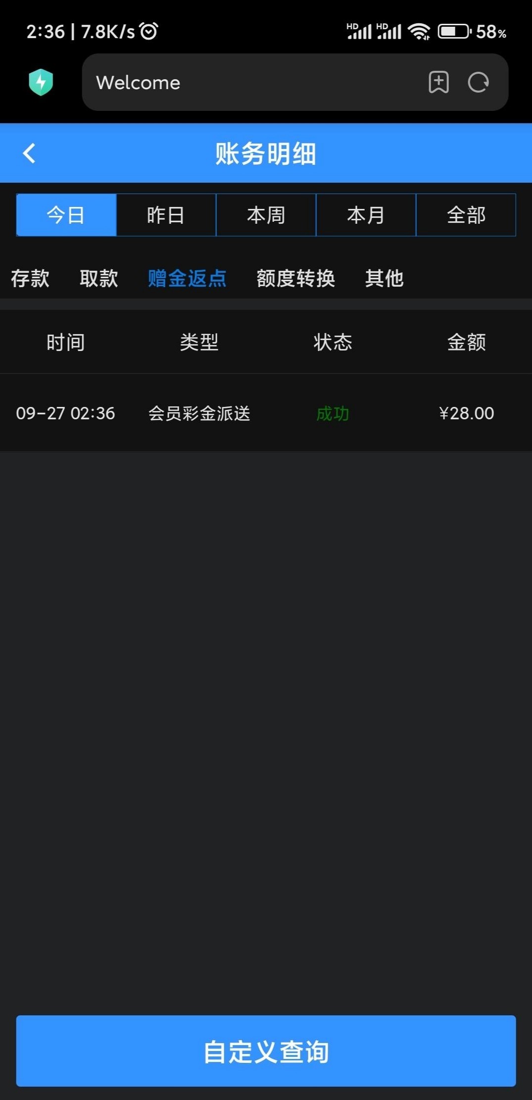 不知道是什么彩金,反正无聊随便找个网站准备充值,结果登录就送了28没充过。你们看看有没有,杀得一批,怎么打都打不上去。最后一飞冲天飞了一百提了算了 652.com