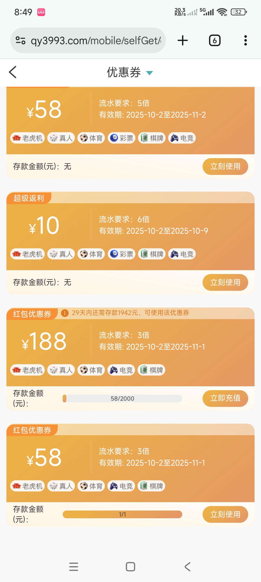 需要充值58+10,有券的还有额外58