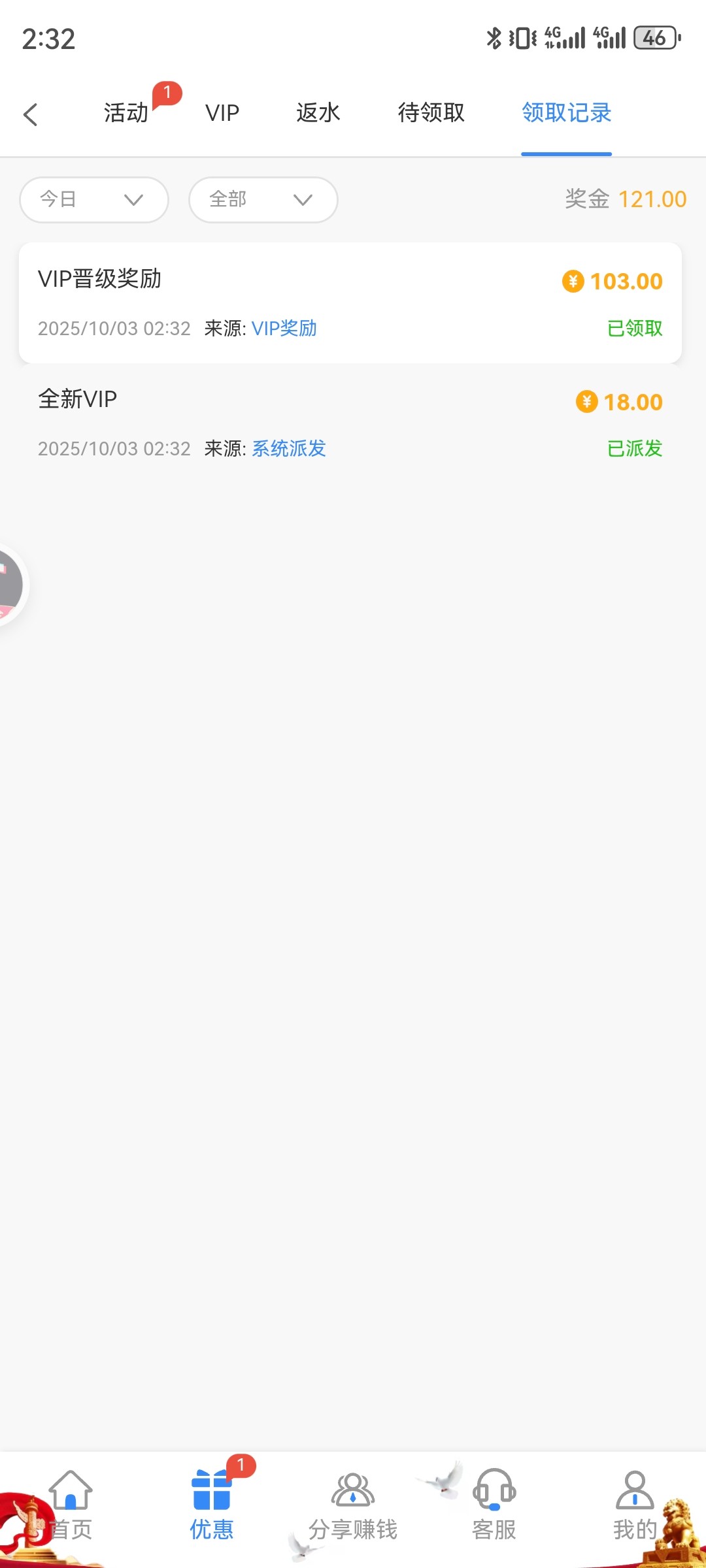 要充值过升级了vip的才有,没有升级过vip的不用去