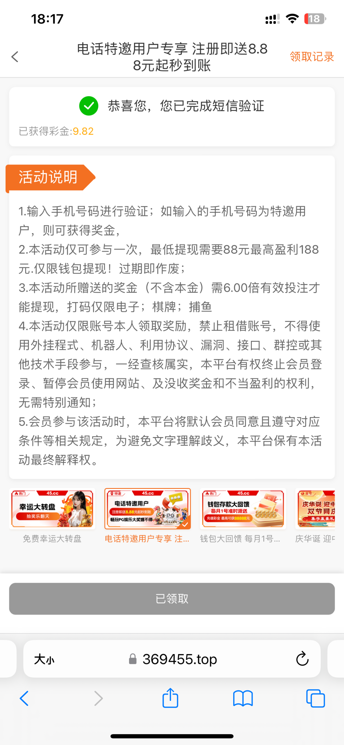 必须是活动开始后绑定手机才有效