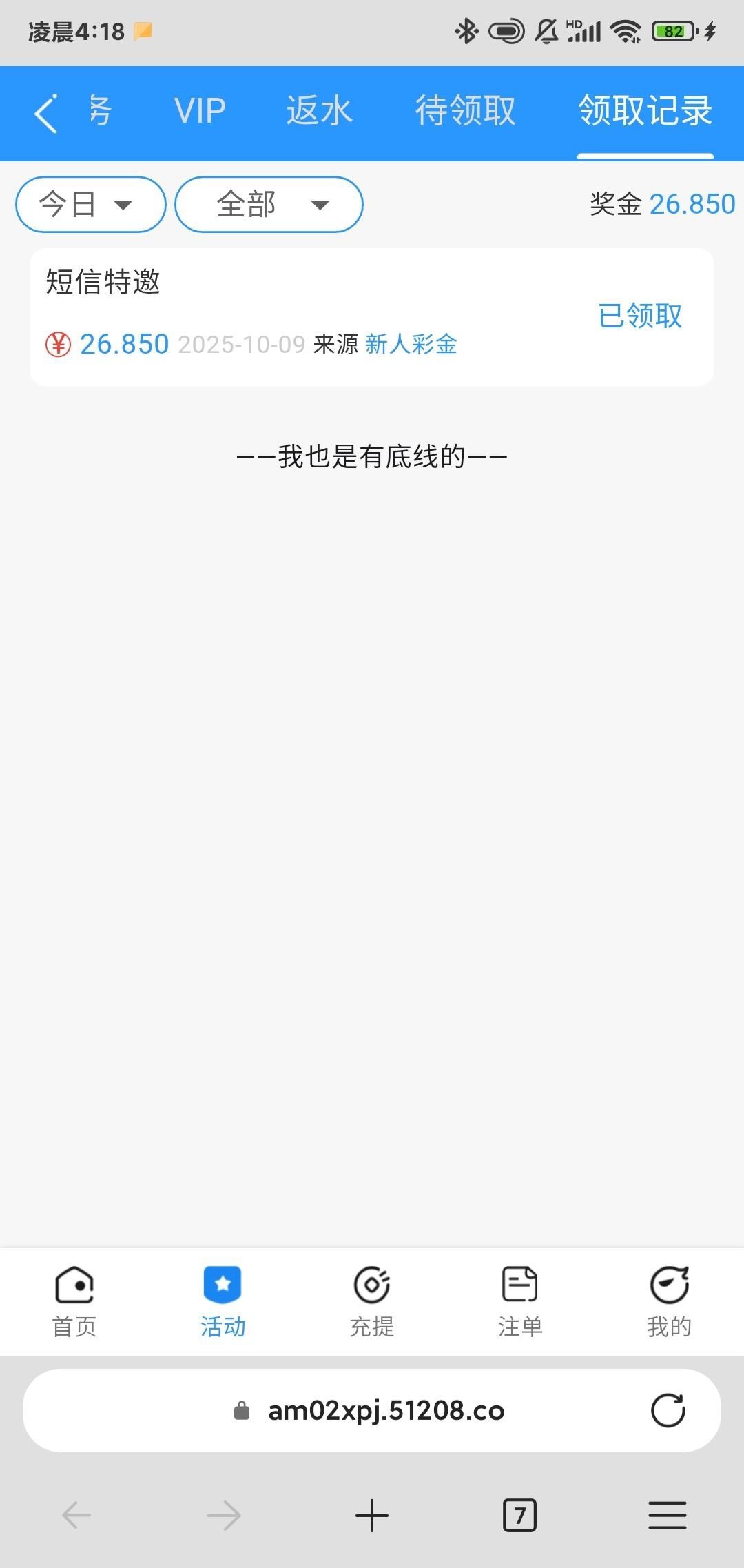 短信特邀彩金以前领过,提过,充值过!得吃的老板赏口饭吃。谢谢老板,祝各位老板一路长虹链接4627.com