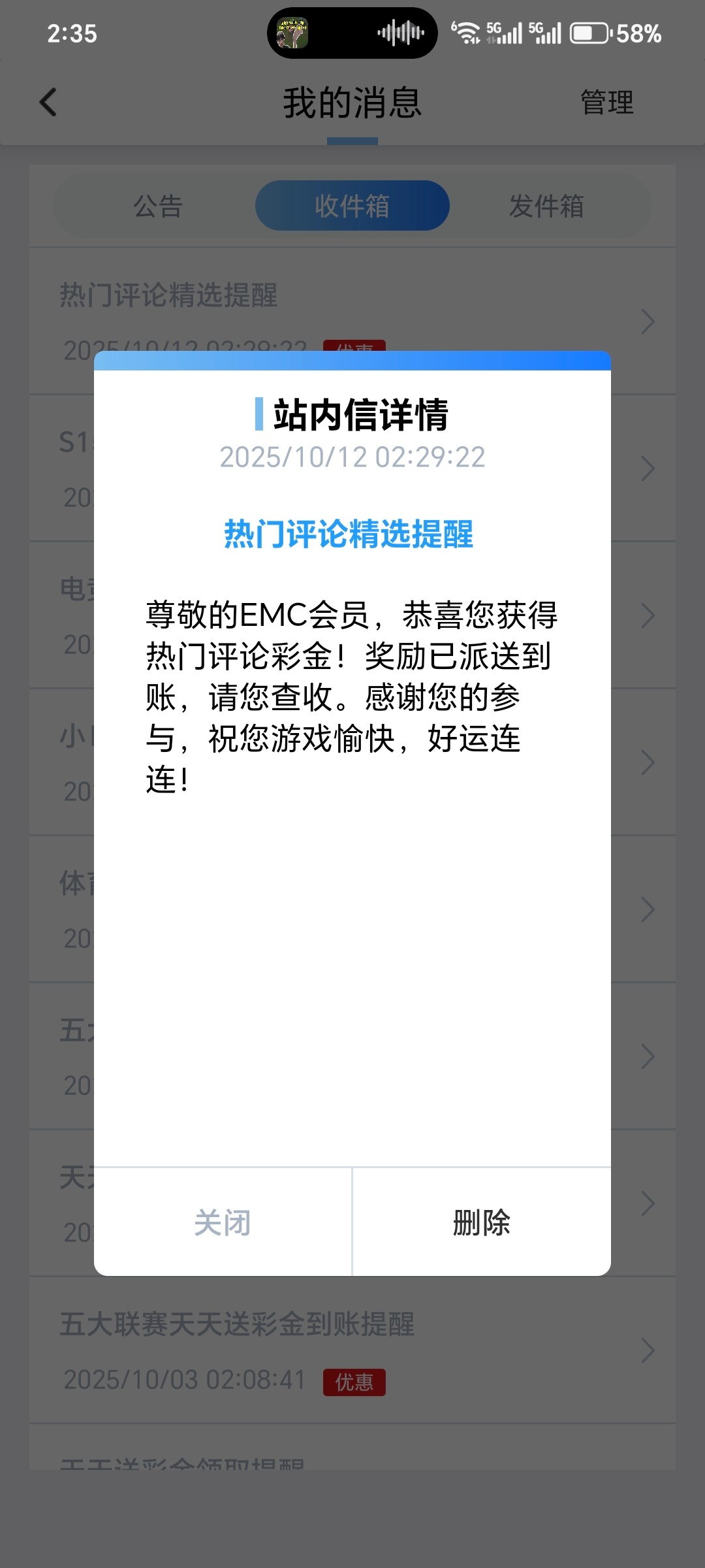 一个在热门里,一个在收件箱里