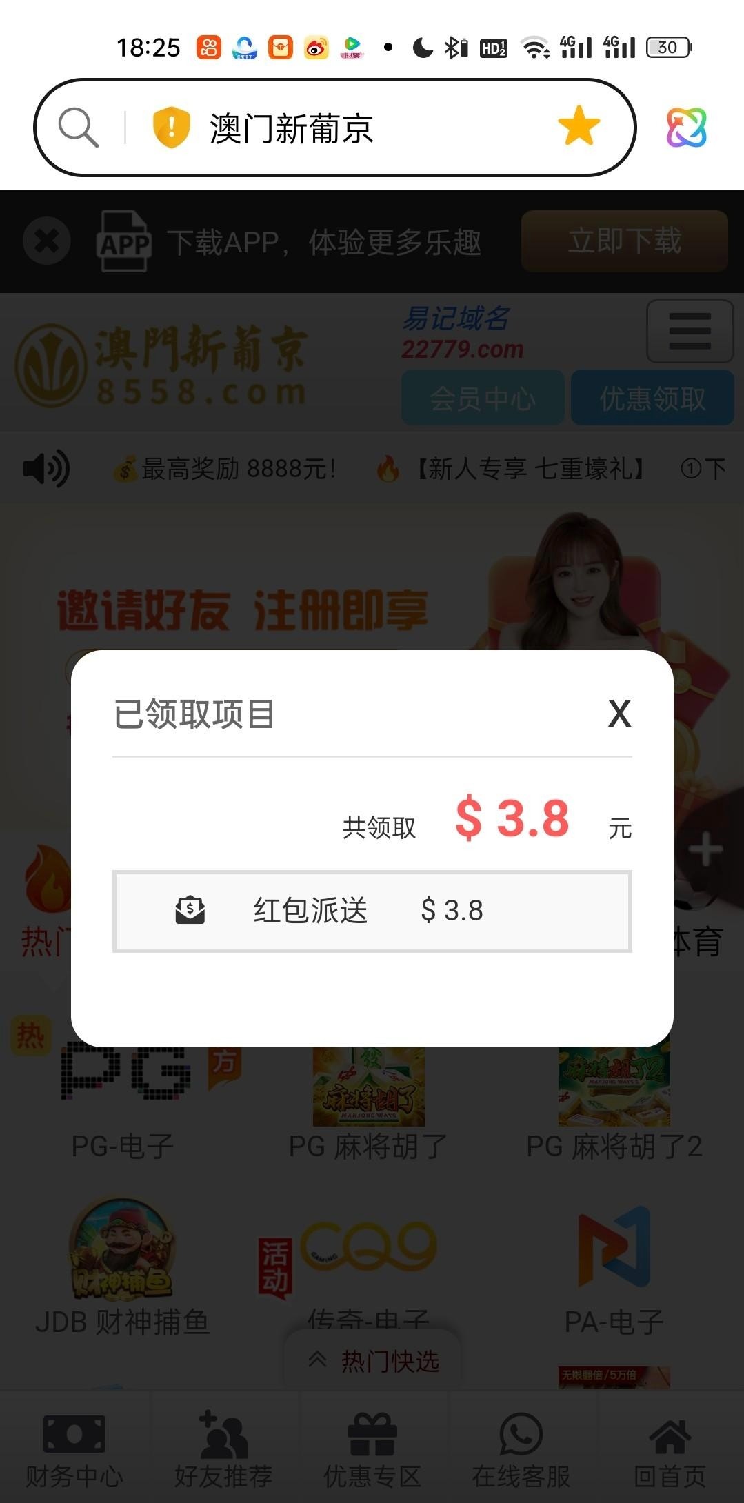 8558.com,不知道什么彩金,登录就有,一键领取