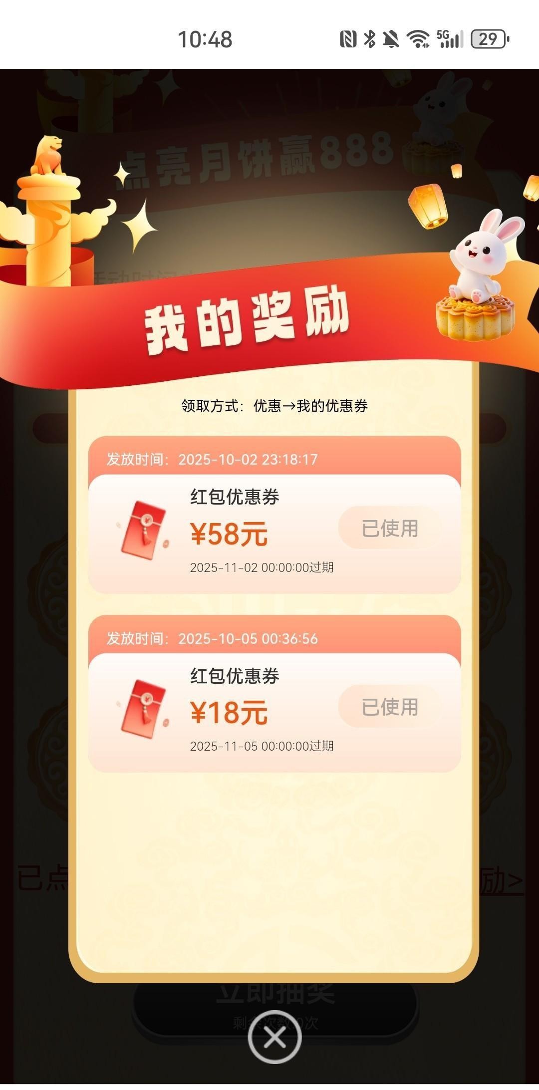 这个月充值过,并且在会员日抽奖过的,去优惠里面开月饼,好像最低18