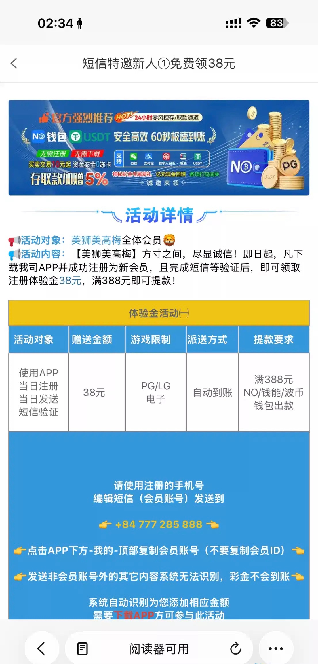 注册了下载去发短信就送38