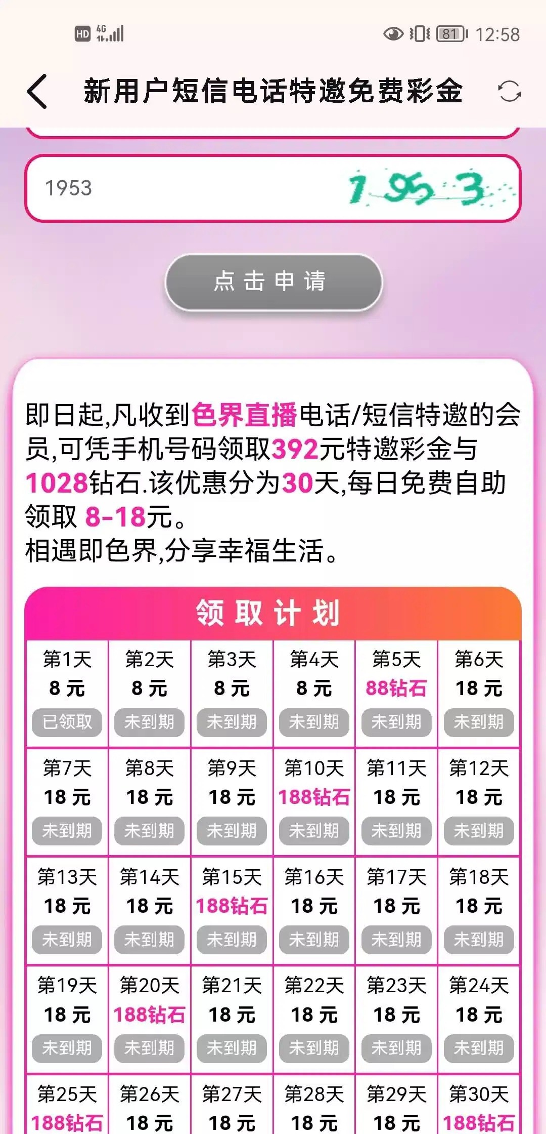 老白菜领过了只能领3天没充值