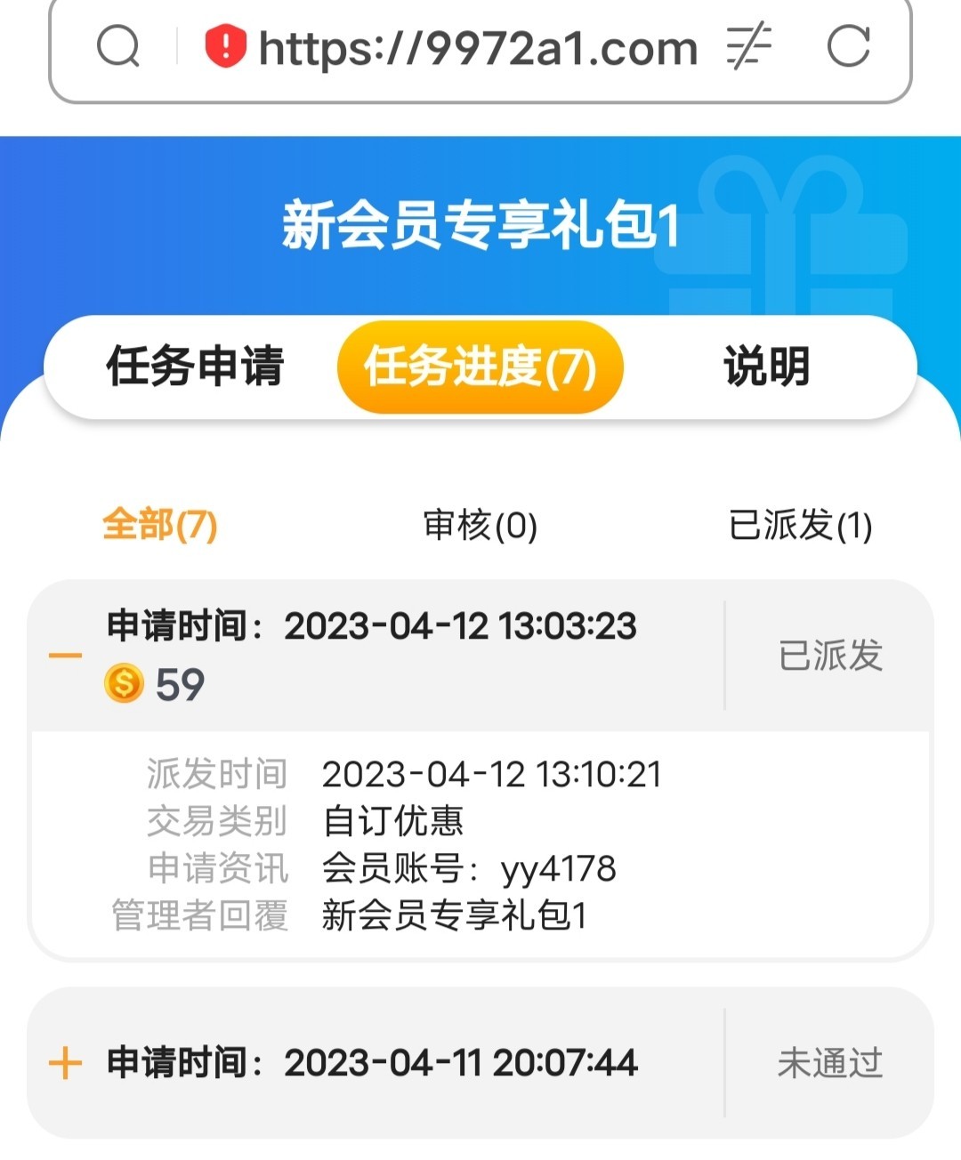 注册绑定银行卡满7天后自助申请59