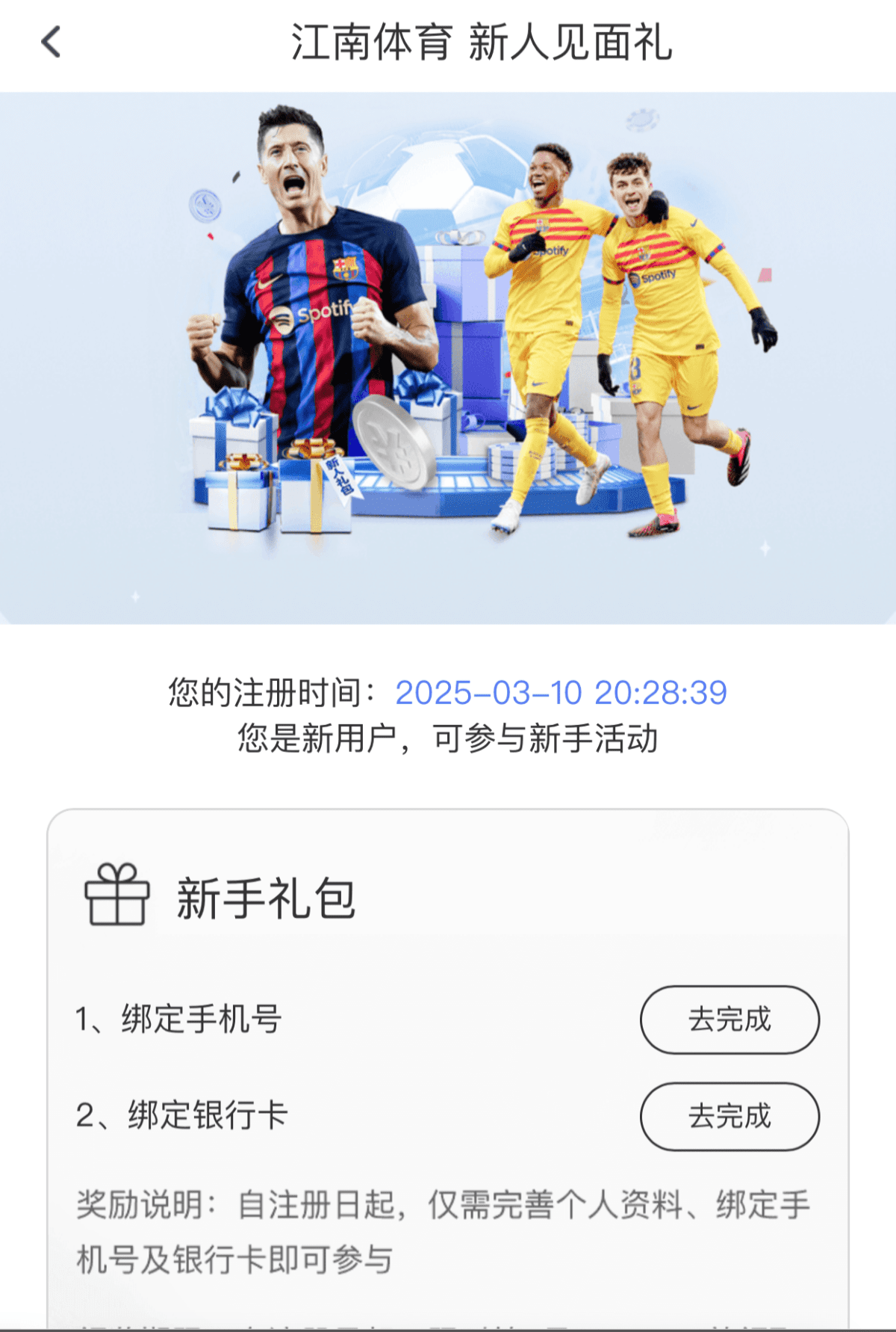新用户注册优惠里面根据要求绑定手机号银行卡领取彩金8倍流水